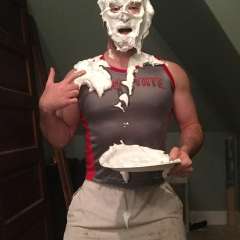 LarzBit3z was surprised by PieFan918 with a big sloppy cream pie to the face